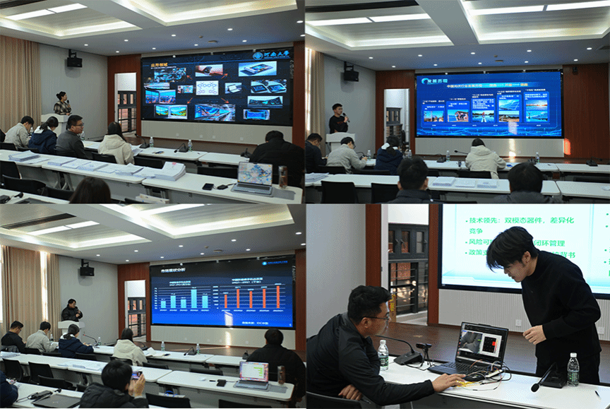 现场,各团队依次登台,围绕技术核心、市场潜力、团队架构与发展规划等维度进行全面阐述。在问答环节,评委老师针对项目的可行性、创新性与落地潜力进行了深入剖析,并提出多项中肯建议。现场互动频繁、思维激荡,展现出浓厚的学术交流与创新氛围。