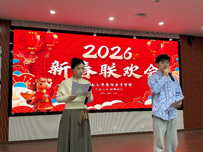 联欢会筹备期间,研究生们精心策划、踊跃参与。从氛围布置到节目排演,处处体现着同学们的用心与热情。现场灯光璀璨、年味浓郁,洋溢着蓬勃的青春气息。